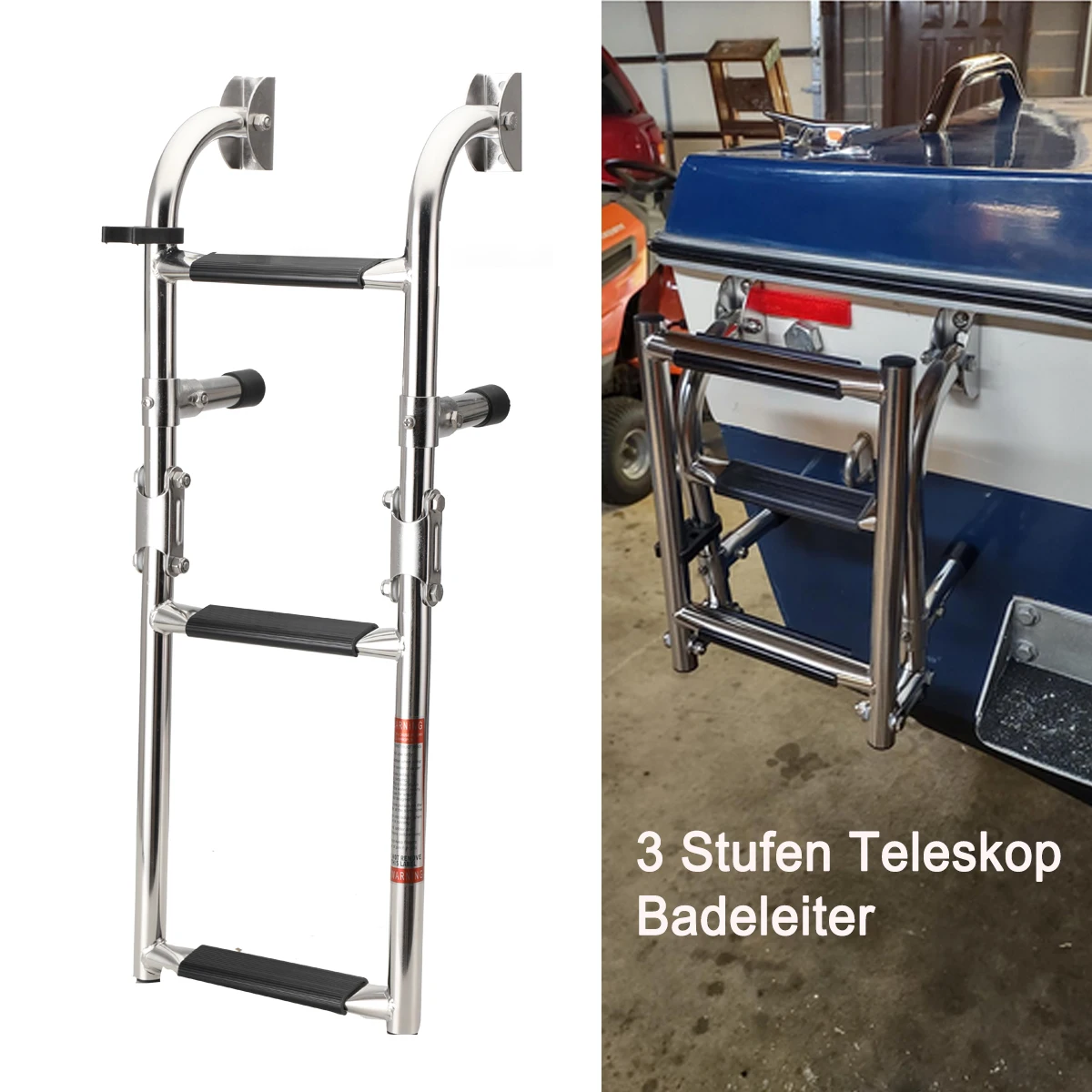 Accessoires de bateau, échelle pliable Marine à 3 marches, échelles de ponton antidérapantes en acier inoxydable avec poignées en caoutchouc