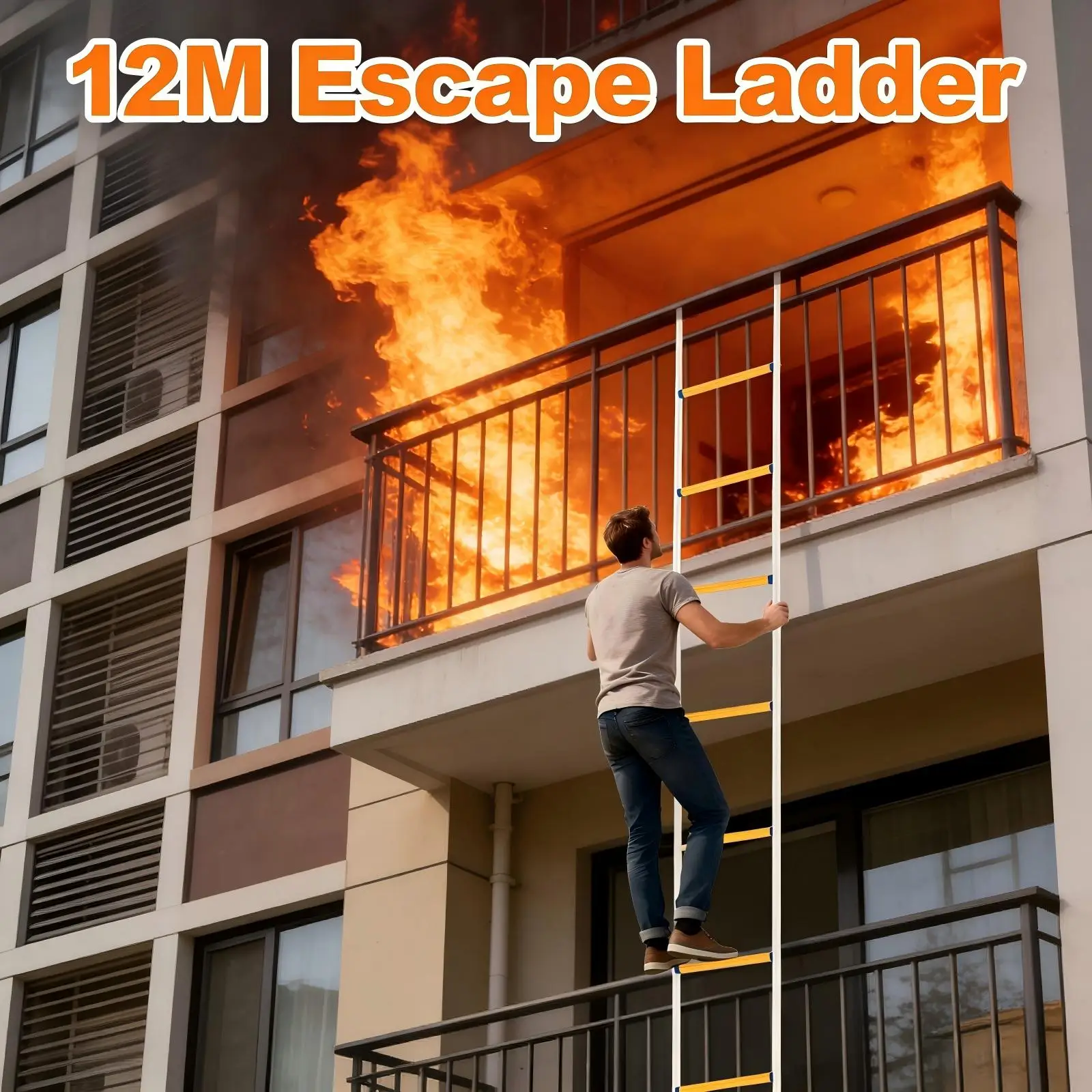 Échelle d'évacuation en acier au manganèse et résine de 12 m, avec mousquetons, pour la construction et l'ingénierie