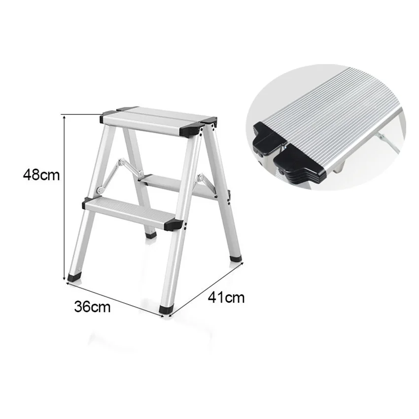 Échelle pliante antidérapante, sécurité double face, charge maximale 150 kg, plateforme en aluminium, outil à 2 marches