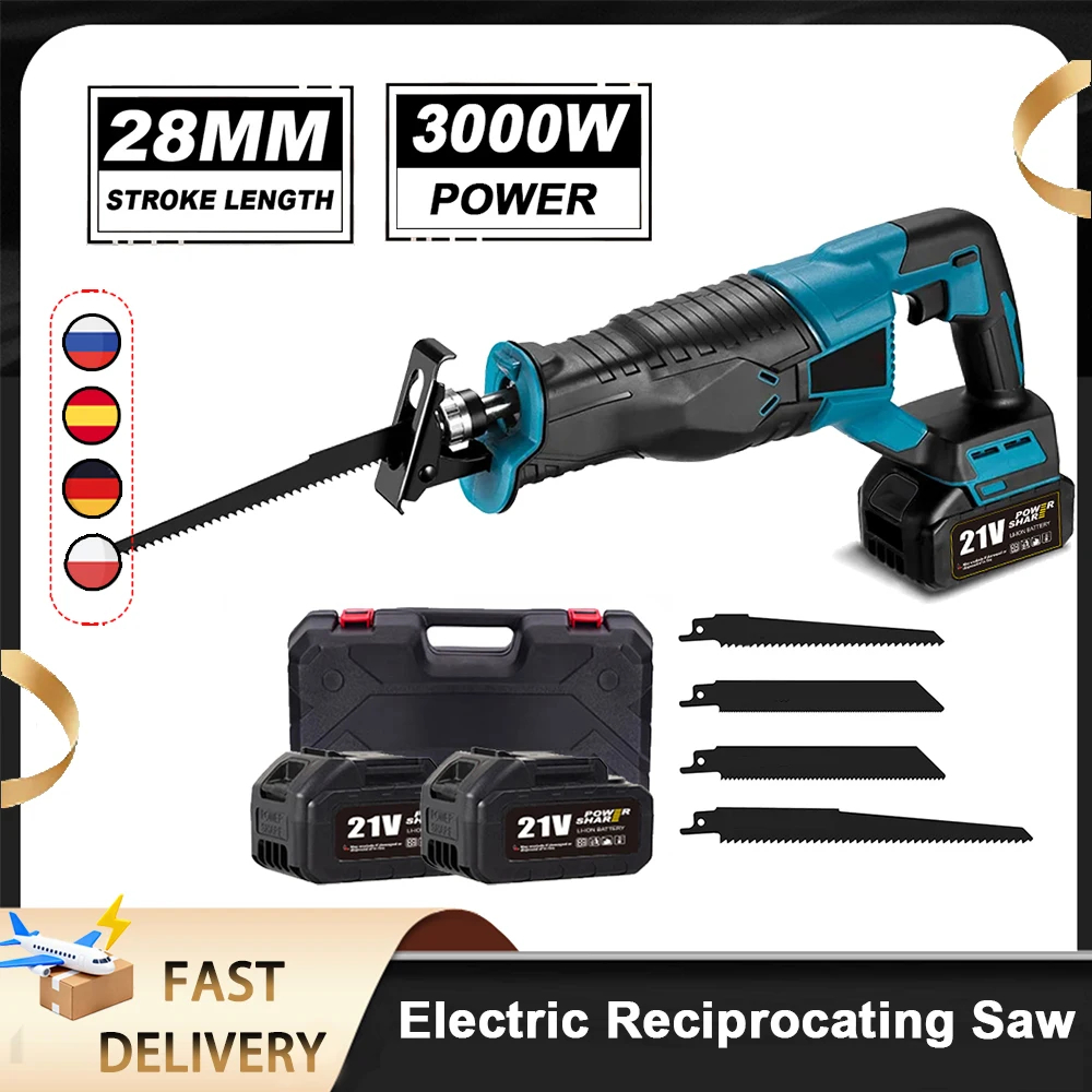 3000W 10000SPM scie alternative électrique tronçonneuse électrique scie sabre outil sans fil Portable avec 4 pièces lame pour batterie 21V