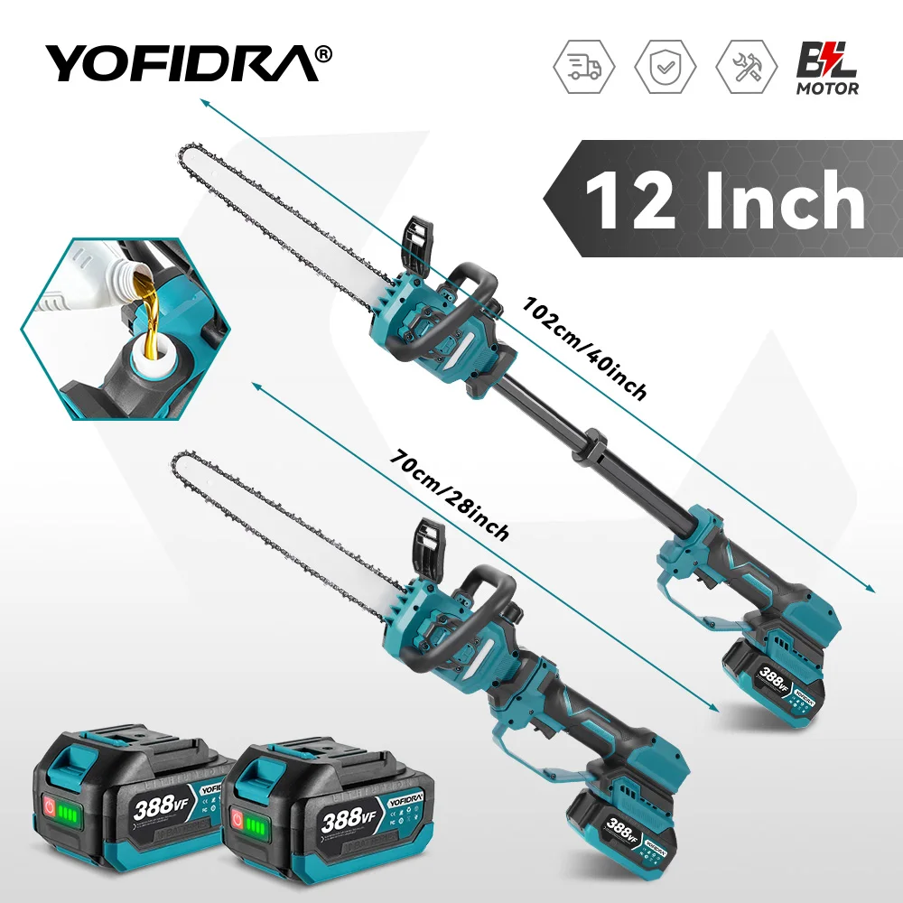 Scie à chaîne sans fil ONEVAN 8 pouces, scie à main électrique sans balais, outil de coupe pour le travail du bois, compatible avec la batterie Makita 18V.