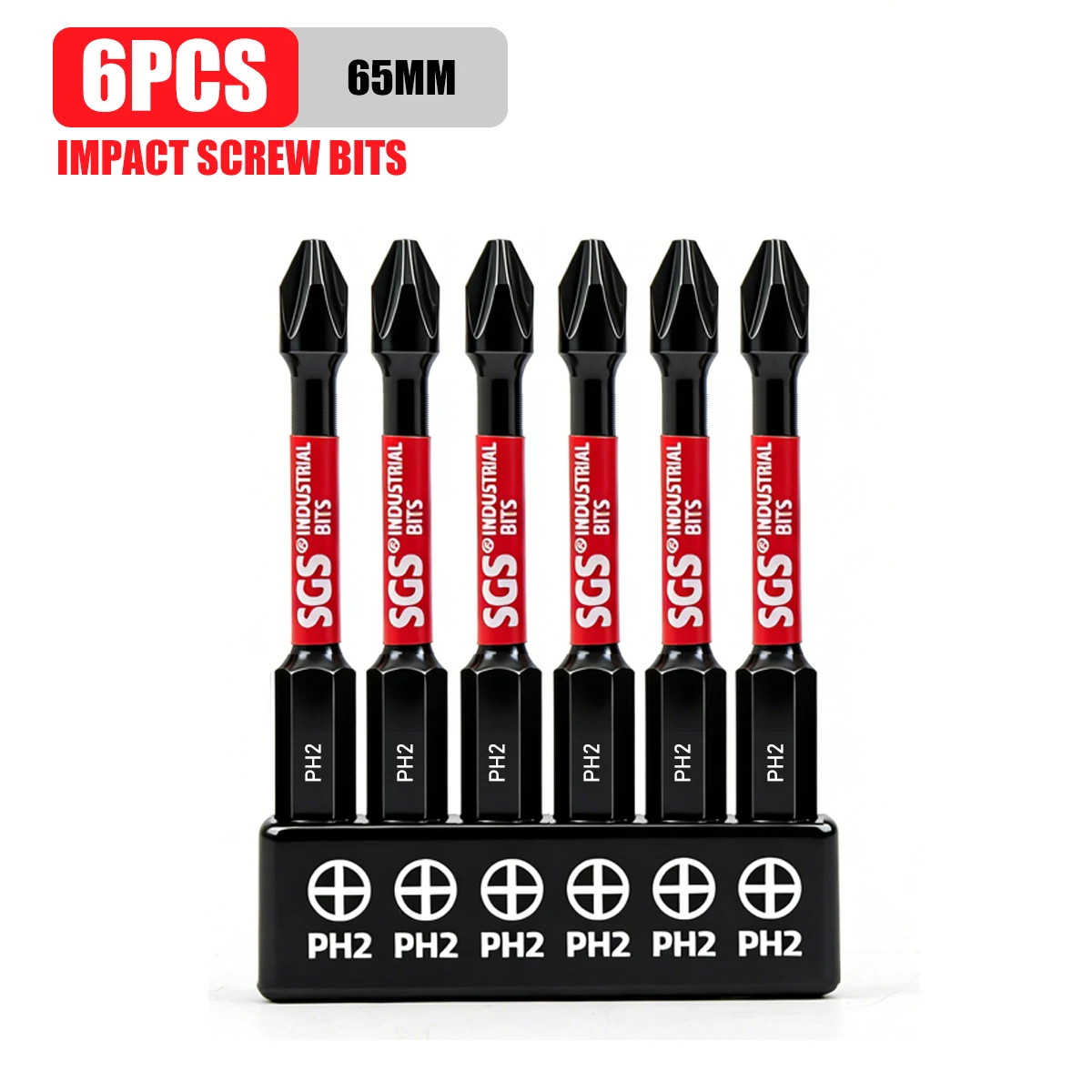 Jeu de 6 embouts de tournevis à chocs Phillips Ph2 65 mm en acier allié S2 avec amortissement de couple pour accessoires d'outils électriques de bricolage domestique