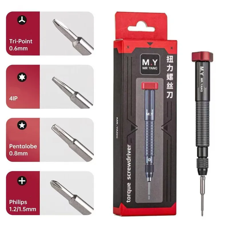 Tournevis dynamométrique YCS MR.YANG M.Y-TX01, kit de 5 embouts (Tri-Point, Pentalobe, Philips, Convex, Cross 4IP) pour la réparation de téléphones mobiles