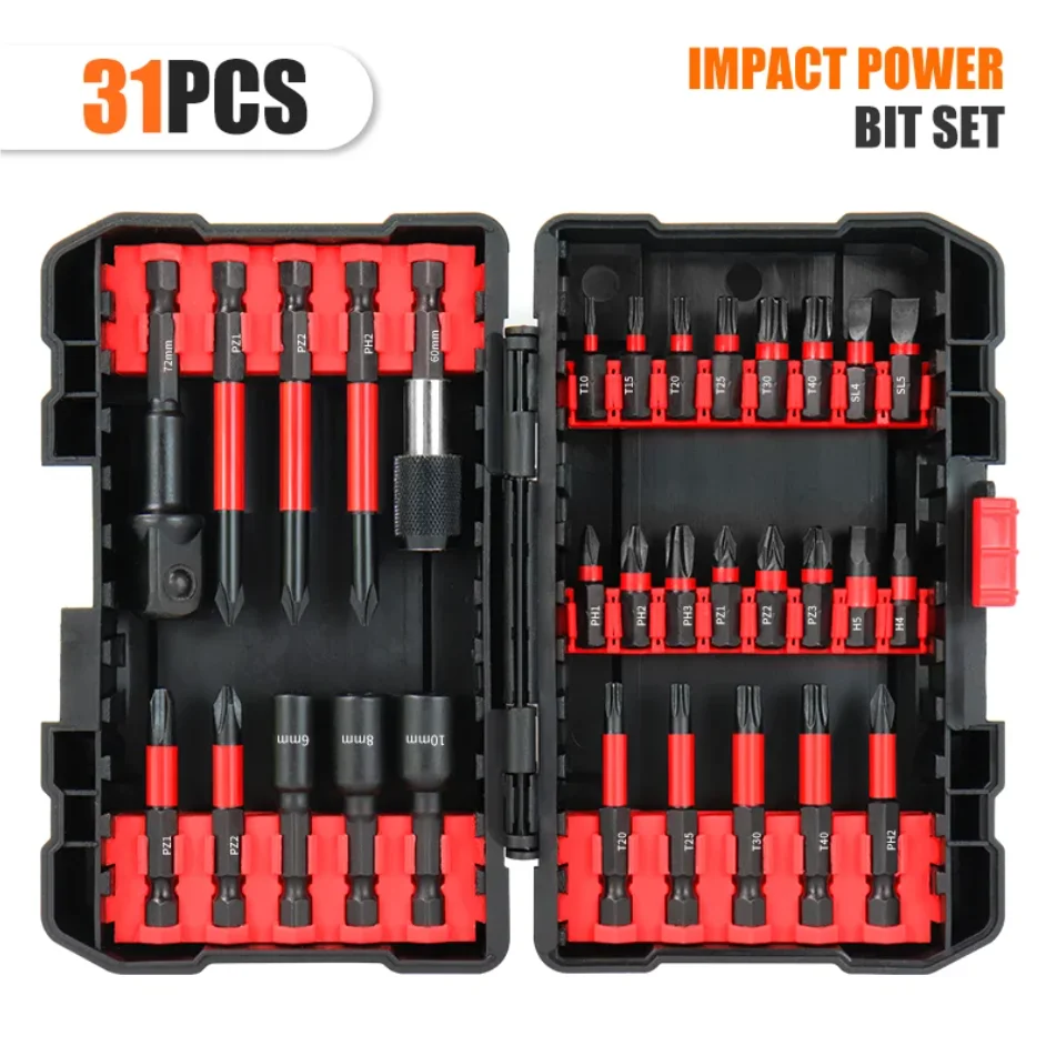 Jeu d'embouts de tournevis électrique, alliage Durable, finition huilée, étanche, comprend des douilles Torx hexagonales Phillips avec étui, 31 pièces