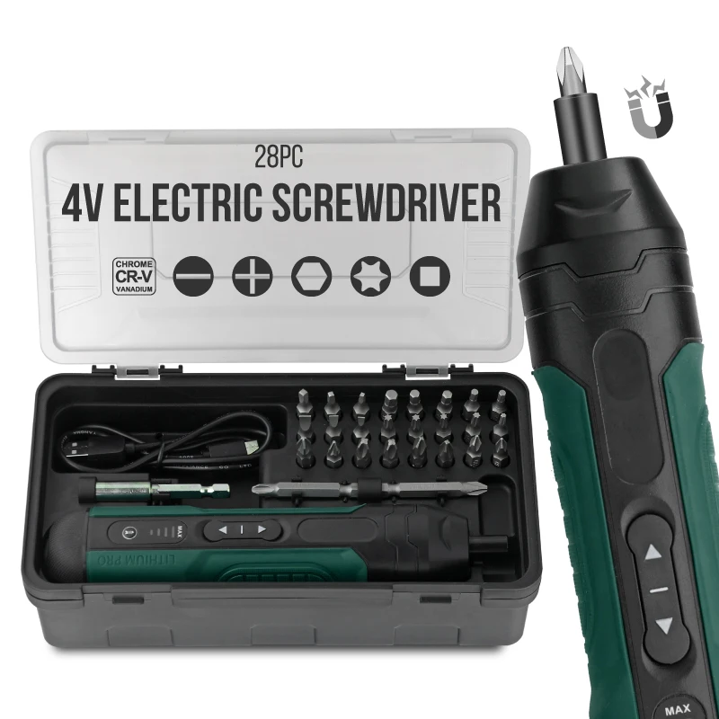 Ensembles de tournevis électriques 4V – Kit d'outils manuels 28 pièces, embouts CR-V avec lumière LED et double mode (réparation manuelle/électrique/maison)