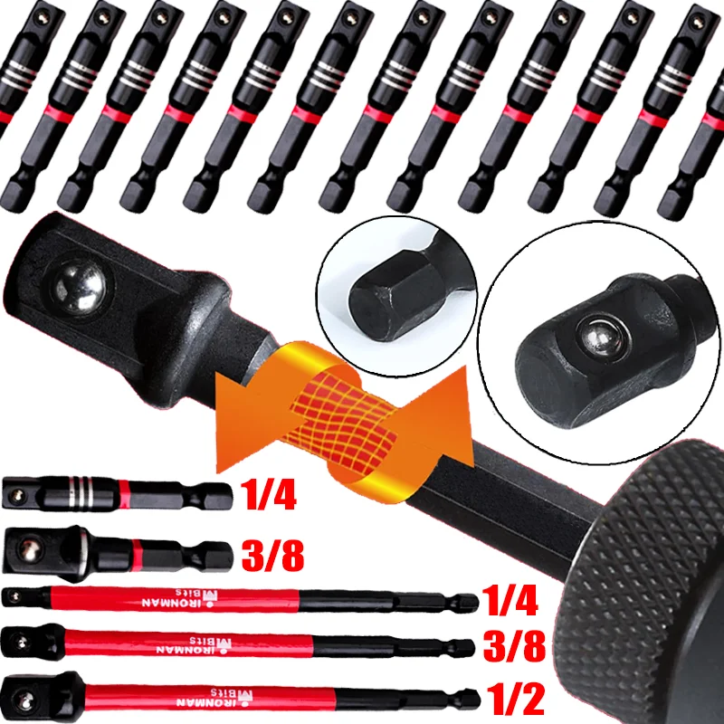 Le jeu d'adaptateurs de douille d'impact convertit les embouts d'entraînement de 1/4 "3/8" 1/2 ", embout d'extension, outils électriques à pointe carrée, clé à chocs à couple élevé