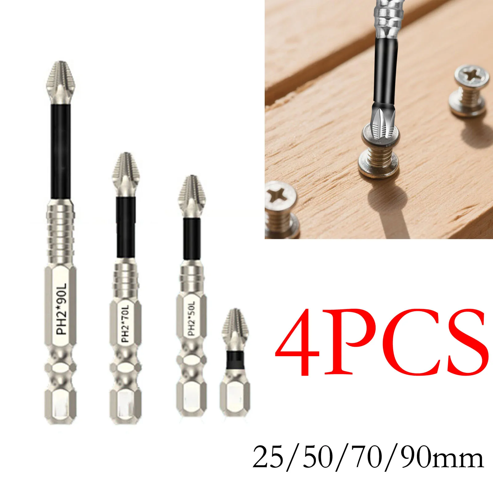 Tournevis croisé antidérapant en acier allié, 25 à 90mm, longs forets PH2 pour outils à main, tournevis, tournevis à écrou, 4 pièces