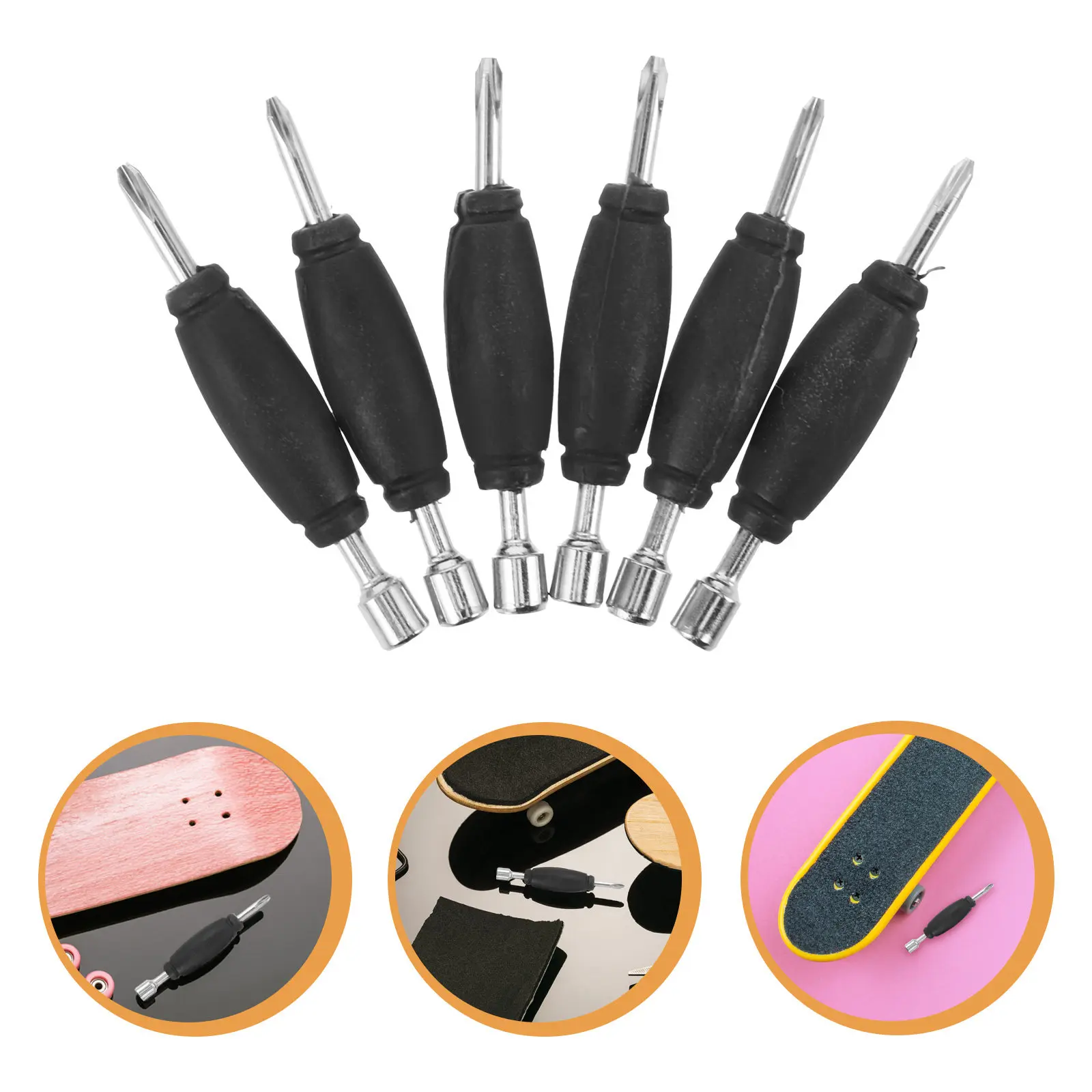 Lot de 6 mini tournevis à double tête en métal pour la réparation de skateboards à doigts et de planches à doigts réglables