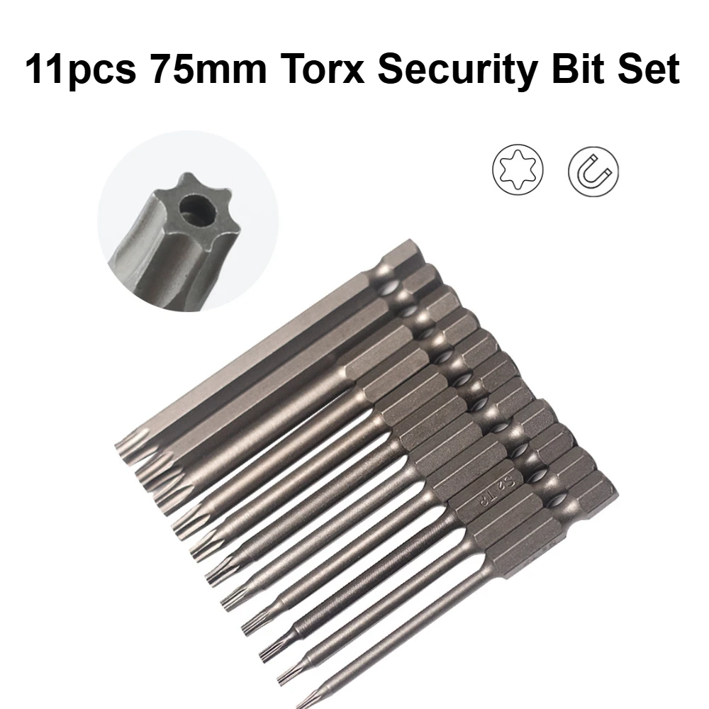 Jeu d'embouts de sécurité Torx 75MM de Long, tête creuse, tige hexagonale, embouts de tournevis magnétiques, forets Torx creux, ensemble d'outils électriques 11 pièces