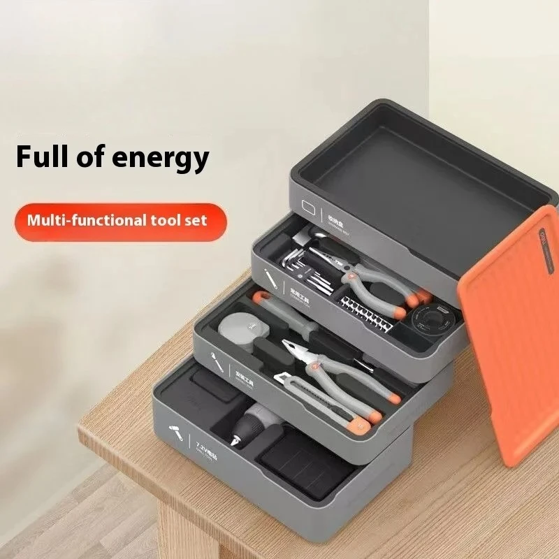 Nouvel ensemble d'outils multifonctionnels pour la réparation d'urgence, perceuse électrique au lithium, marteau, pinces, outils de menuiserie, boîte à outils