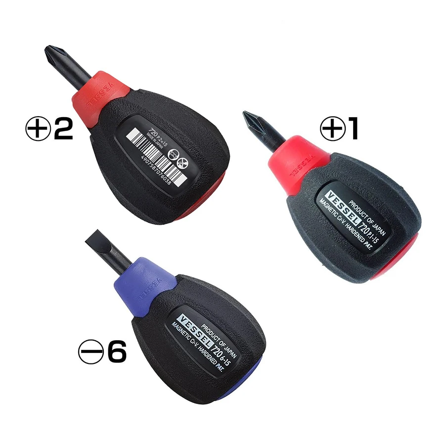 VESSEL Mini tournevis magnétique SUPER CUSHION 1 pièces avec poignée antidérapante pour vis Phillips et à fente outil à main série No.720