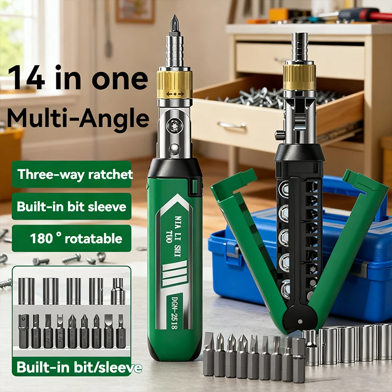 Jeu de tournevis à cliquet multifonctionnel 14 en 1, outils de réparation automobile, jeu d'embouts multi-angles, outils manuels professionnels