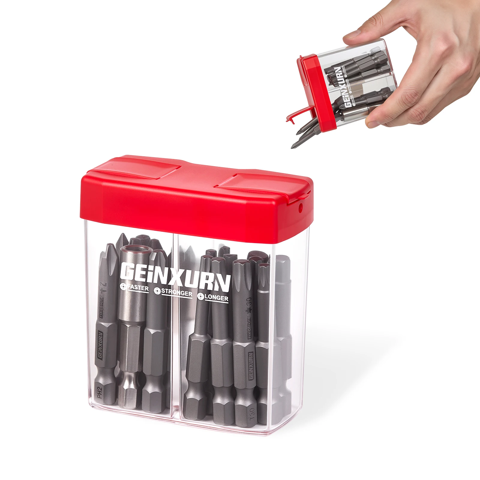 Geinxurn FIXEDGE 19 pièces jeu d'embouts de tournevis magnétiques 50mm (PH0-PH3, PZ0-PZ3, T15-T30, H3-H6, SL4-SL5) avec acier inoxydable 50mm
