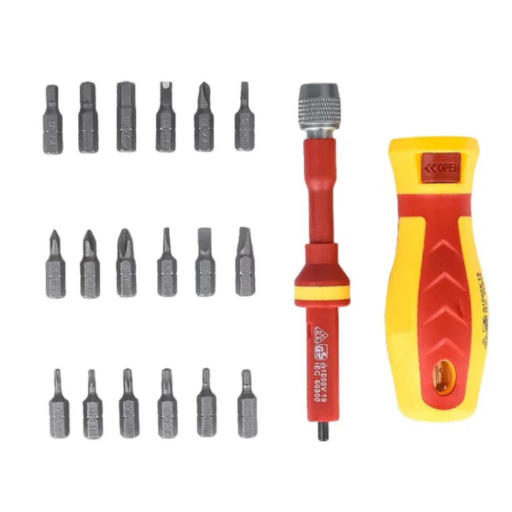 Jeu d'embouts de tournevis magnétiques haute tension pour électricien, tête fendue multifonctionnelle, croix et Torx, 18 en 1, 1000V