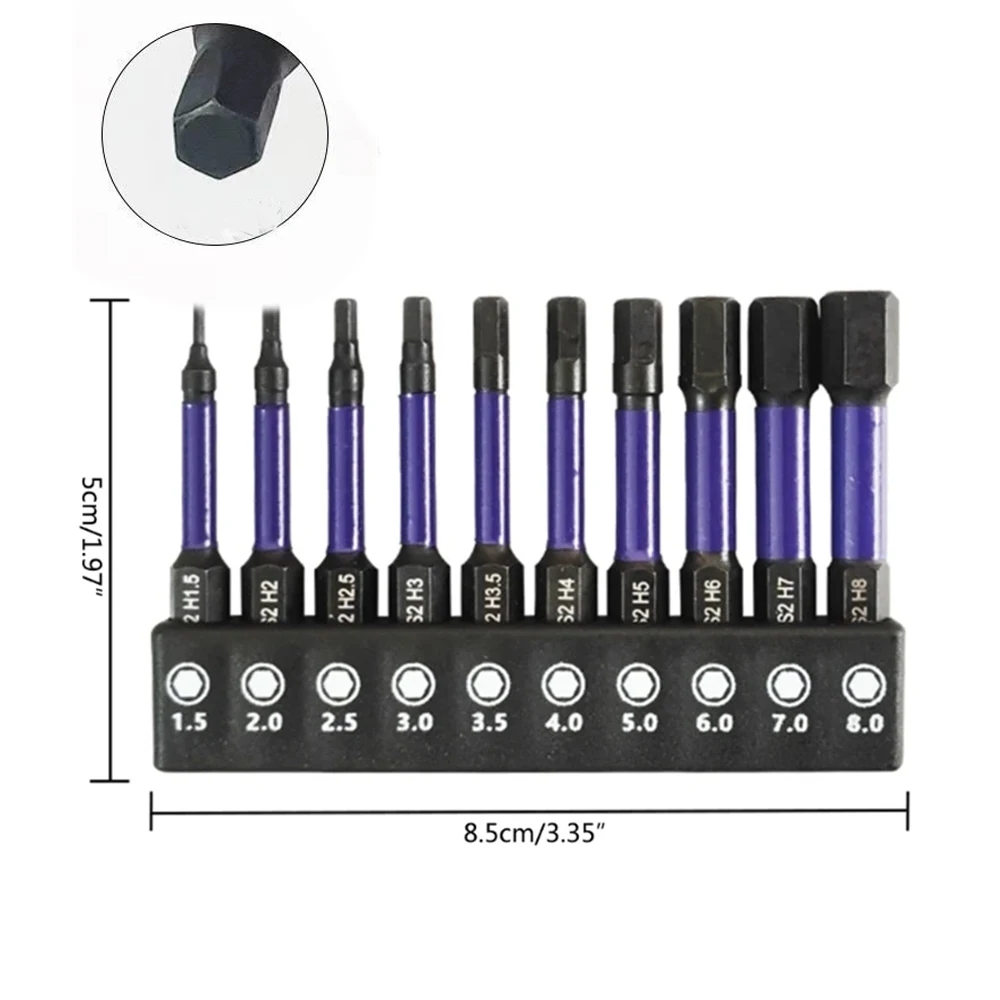 Jeu de 10 embouts de tournevis, embout hexagonal, porte-embout magnétique, jeu d'embouts de tournevis hexagonaux à tige de 1/4”, outils d'embout, H1.5-H8