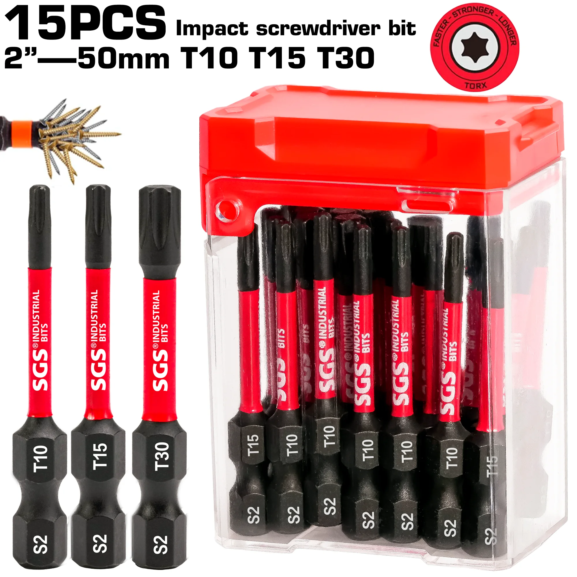 15 embouts de tournevis Torx T10/15/30 en acier S2 de 50 mm, antirouille, résistants aux chocs, ensemble combiné transparent, compact et pratique