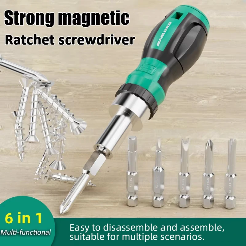 Tournevis à cliquet magnétique puissant 6 en 1, tournevis à fente croisée multifonction, outil manuel permettant d'économiser du travail pour un usage domestique