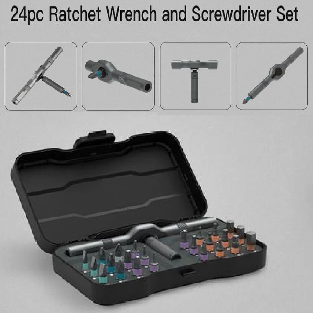 Jeu de tournevis à cliquet polyvalents 24 en 1, jeu de tournevis magnétiques, jeu d'entraînement multi-embouts, poignée à cliquet détachable pour calcul