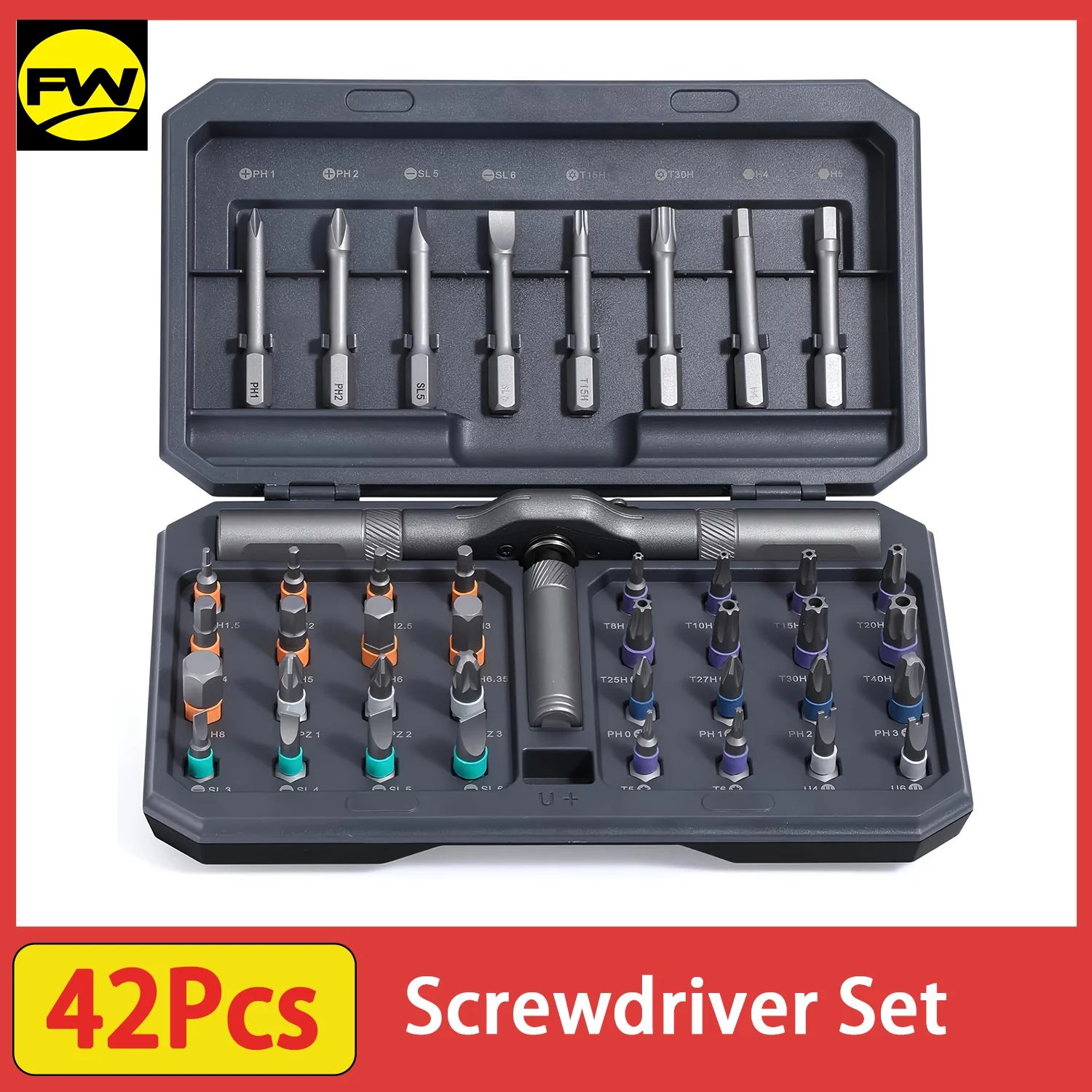 Jeu de tournevis magnétiques 42 en 1, jeu de tournevis à cliquet DIY avec poignée à cliquet amovible