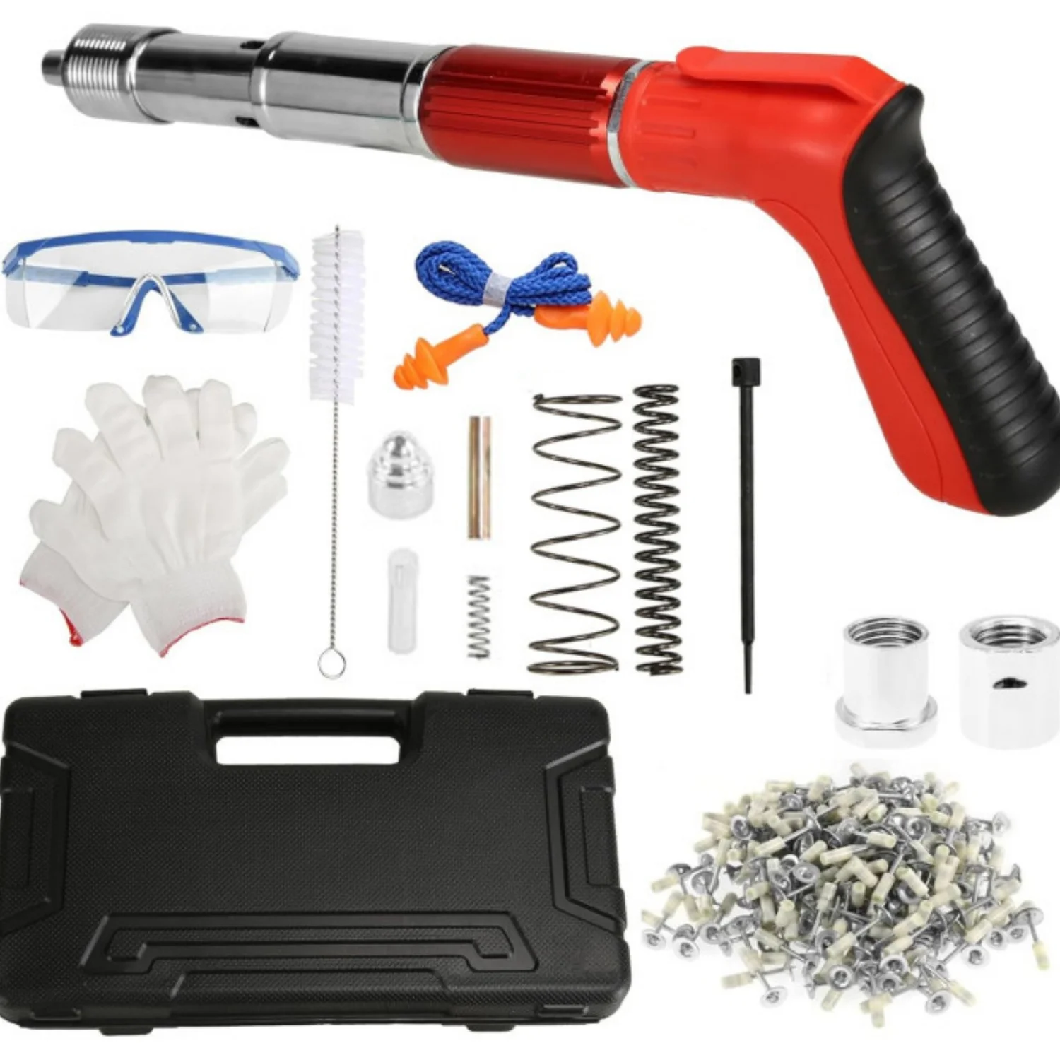 Pistolet à clous et outil à rivets manuels en acier, avec 100 clous pour fixation murale sur béton/plafond/paroi à rainures