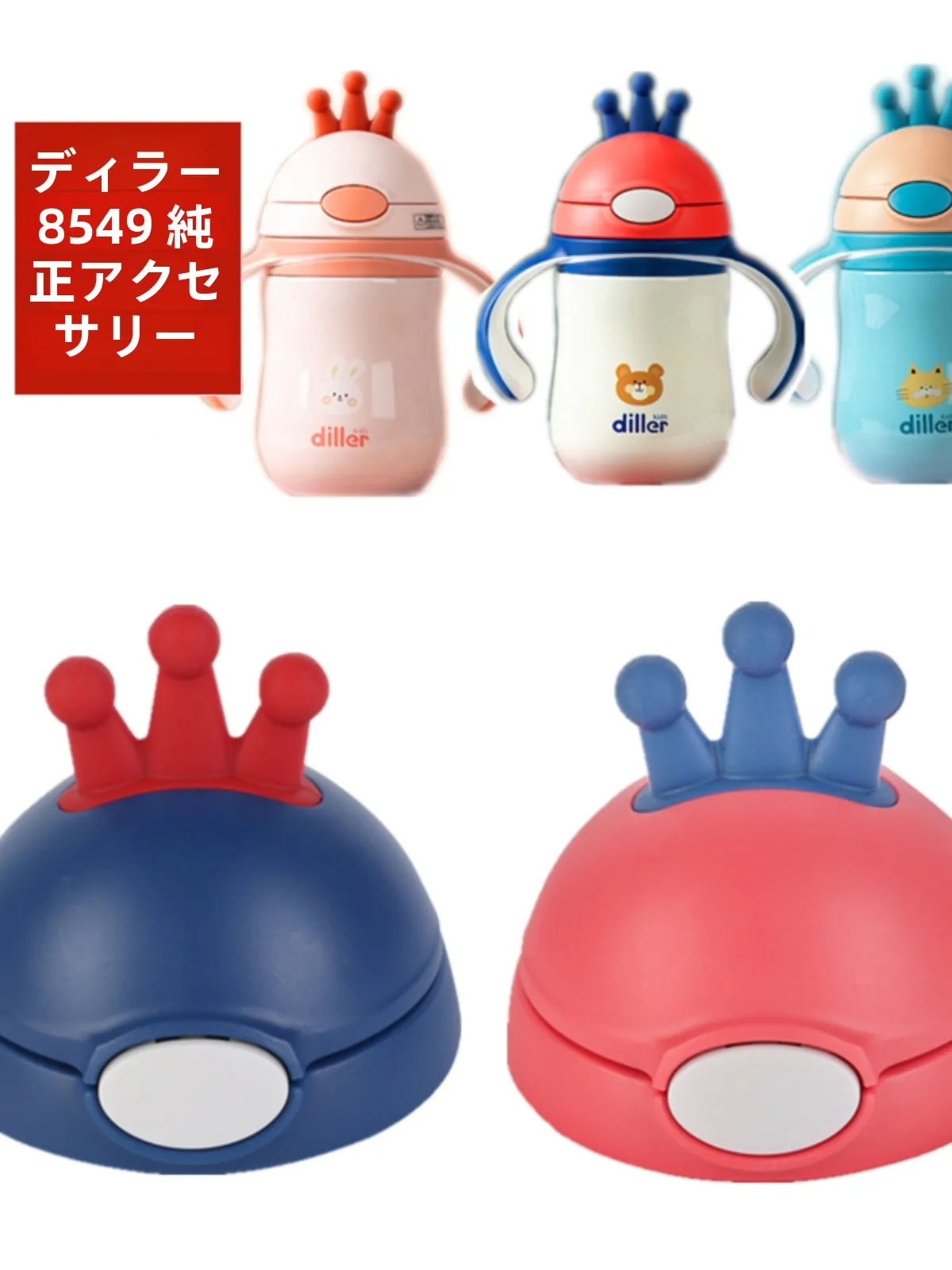Diller – pièces de tasse d'eau isolée pour enfants, couvercle St étanche pour bébé, ustensiles de salle à manger, accessoires, conception de couronne