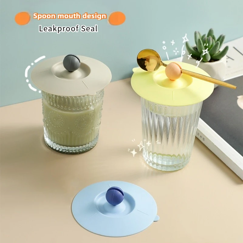 Couvercle de tasse en Silicone multi-usages, avec porte-cuillère à remuer, anti-poussière, résistant aux cendres, vie Simple, couvercle de tasse en Gel souple multifonctionnel