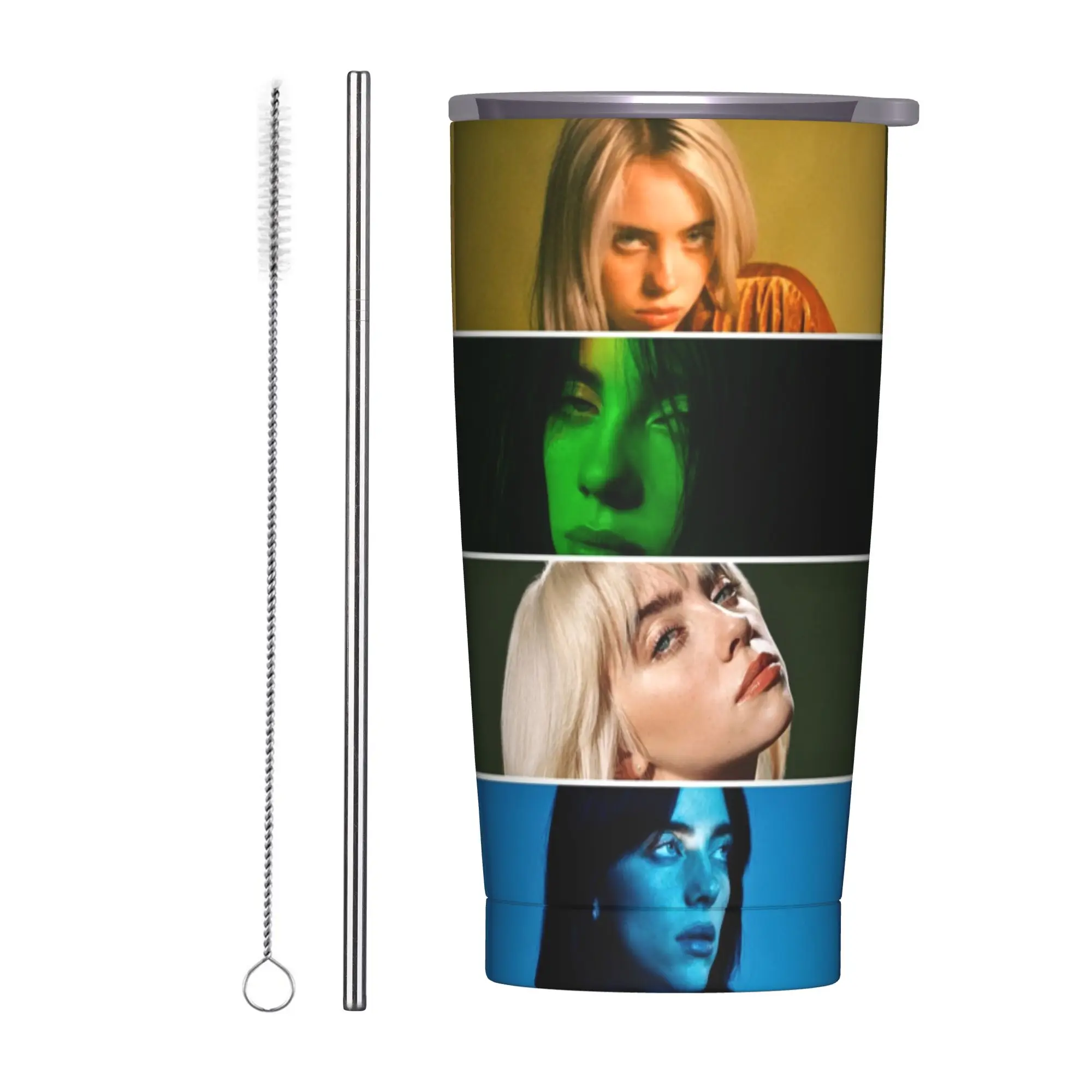 Gobelet isotherme sous vide Singer Music Billies Eilish avec couvercle et paille, 20 oz, en acier inoxydable à double paroi, mug à café, bouteille, tasse