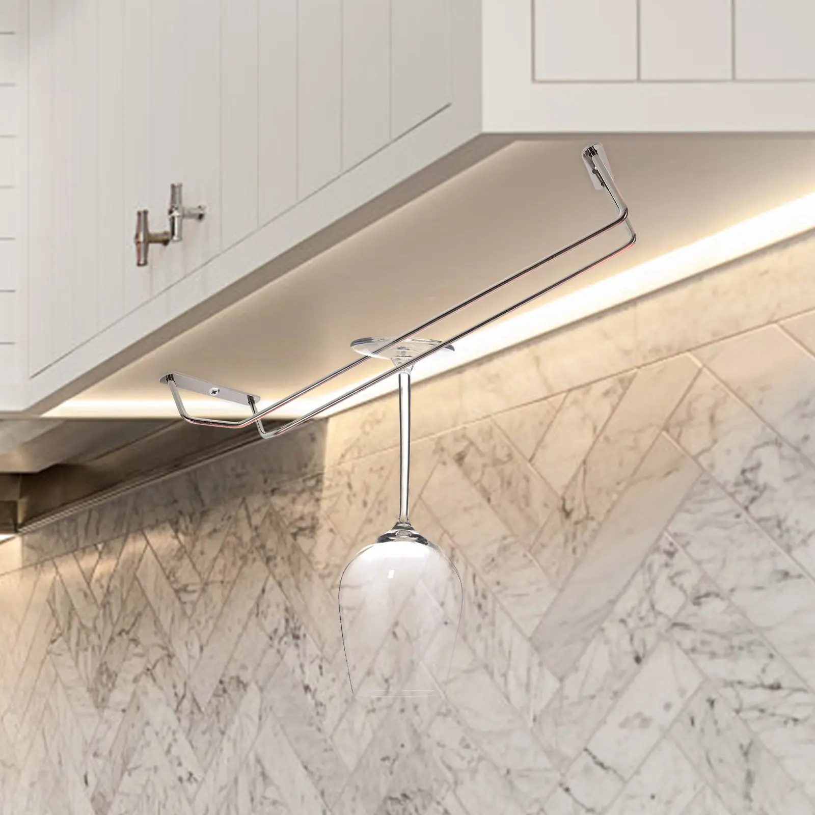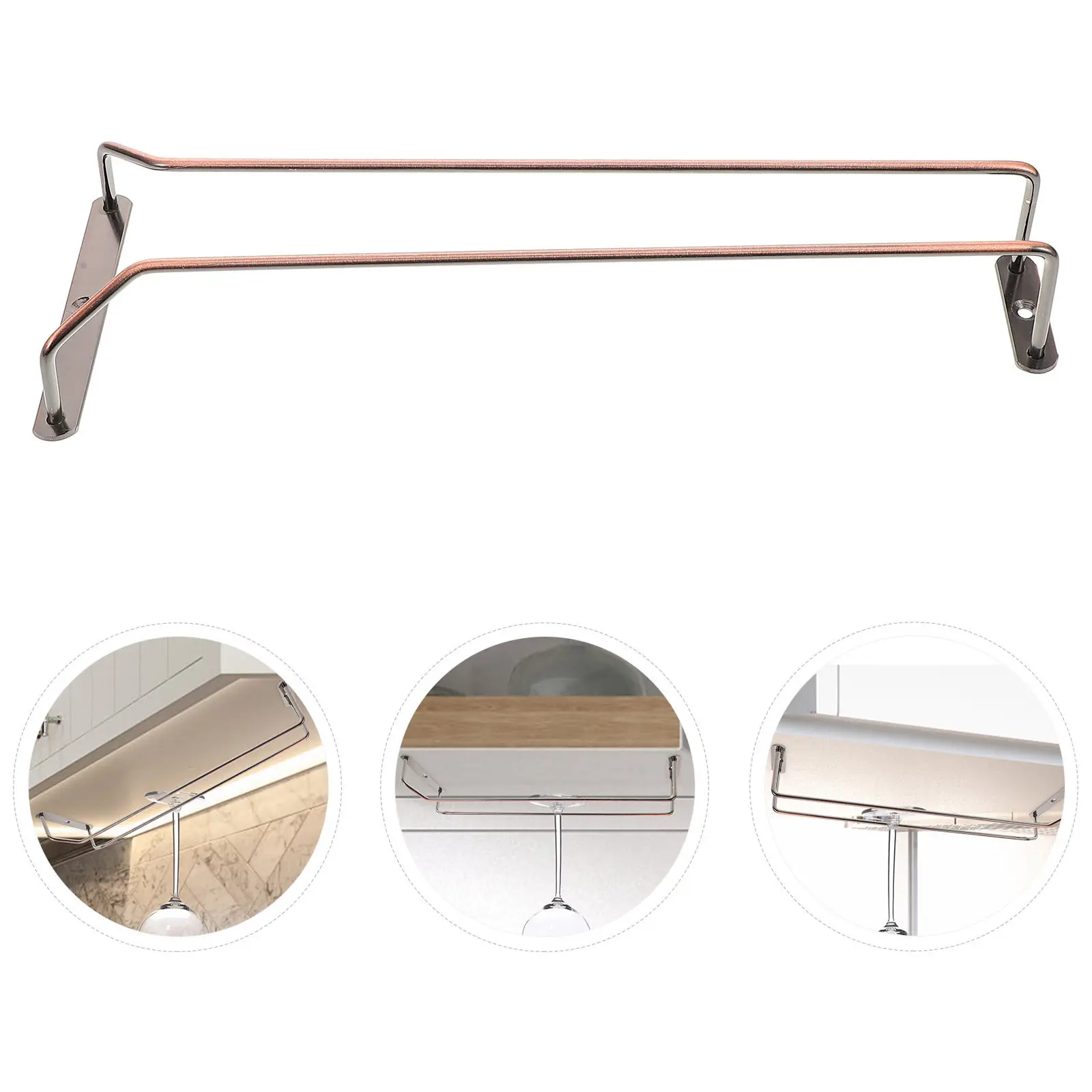 Lot de 2 supports à verres à vin suspendus sous armoire, porte-verres à pied en fer, organisateur de verres de bar, support à verres de cuisine