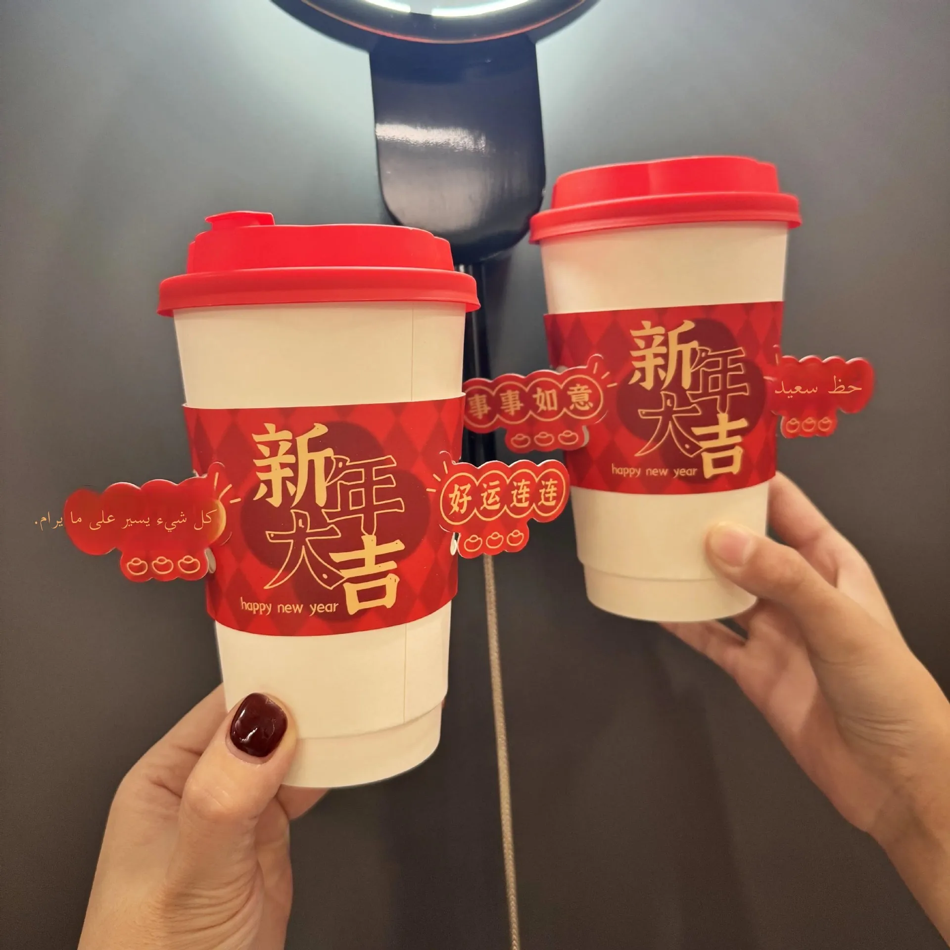 Porte-gobelet en papier rouge pour le Nouvel An, gobelet à café spécial à usage unique avec un design de fête, couvre-gobelet
