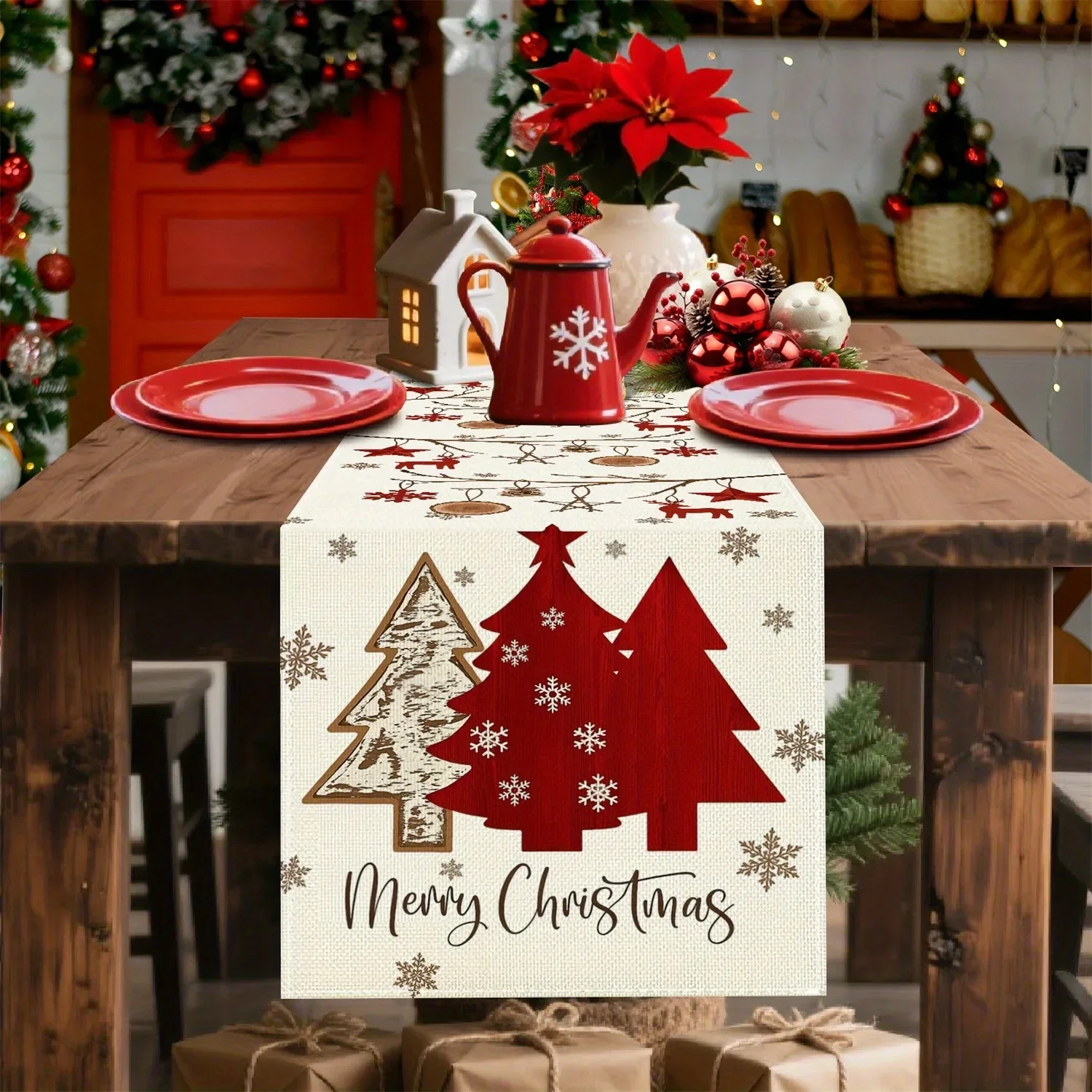 Décorations de table de Noël, drapeaux de table, branches d'arbre de Noël, flocons de neige, motifs d'arbre de Noël, chemins de table de Noël