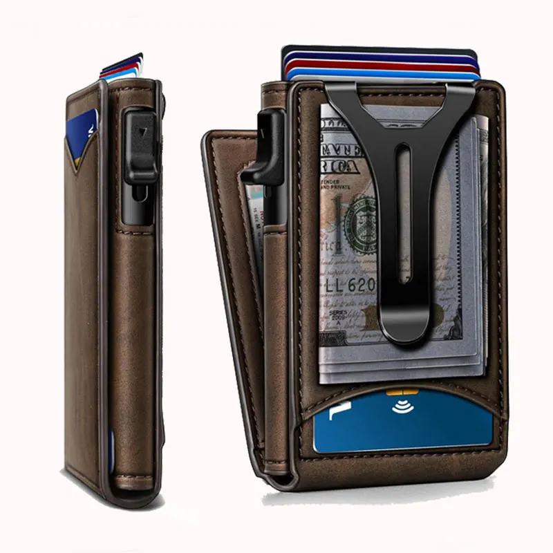 Luxe RFID blocage porte-carte hommes portefeuilles sac d'argent en métal porte-carte de crédit en aluminium mince mince intelligent minimaliste portefeuilles