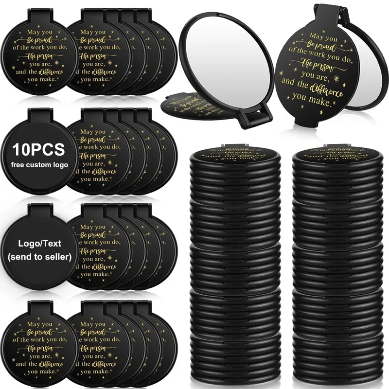 10 pièces Miroir de poche compact personnalisé gratuit Mini miroir rond de maquillage portable pliable pour femmes Cadeaux d'appréciation Utilisation en voyage