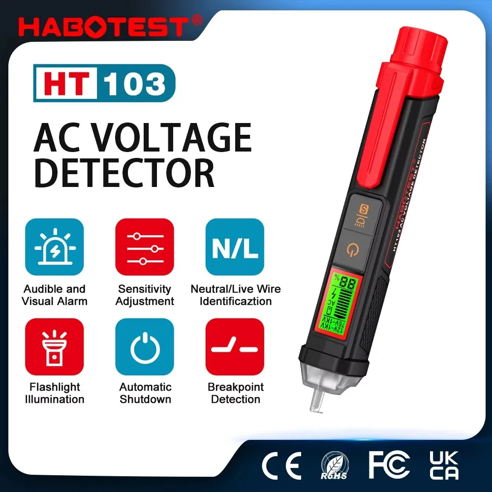 Testeur de tension AC sans contact HABOTEST HT103 12-1000V, détecteur de tension numérique étanche, stylo testeur électrique avec écran LCD