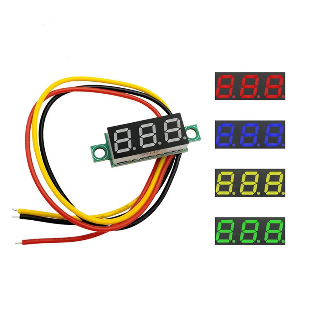Mini voltmètre numérique DC 0-100V, testeur de tension, panneau mètre, rouge, bleu, vert, jaune, moto, voiture, 3 fils, 1-10 pièces