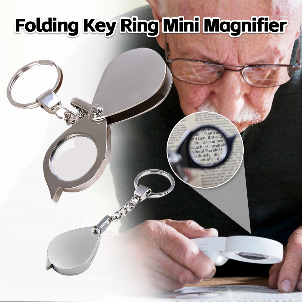 Loupe métallique argentée 15X pliable, Mini porte-clés Portable exquis, Loupe en verre, outil de poche, fournitures cadeaux