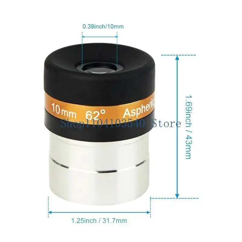 Oculaire 02DC pour télescope, oculaire asphérique à grand 62 °, oculaire asphérique 1.25 pouces avec œilleton souple