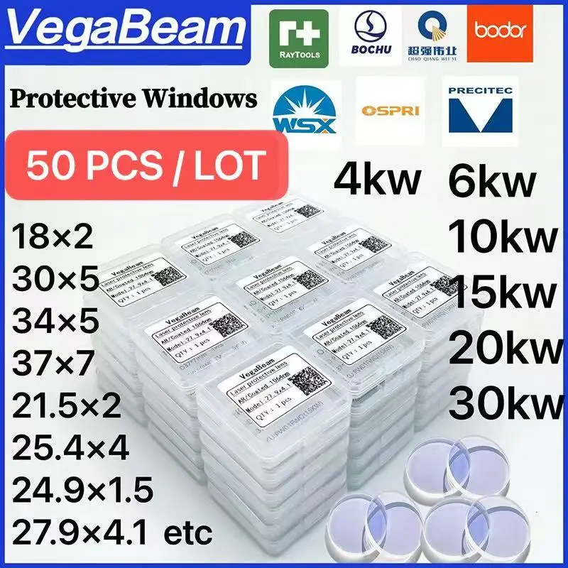 50 lentilles de protection laser 18x2 27.9x4.1 30x5 34x5 37x7 15kw 20kw 30kw haute puissance pour tête de découpe laser Raytools BOCI WSX