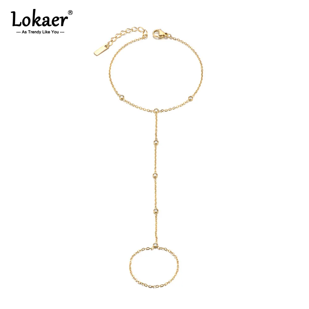 Lokaer 316L acier inoxydable Zircon perles arrière de la main doigt Bracelet mode Sexy chaîne étanche bijoux en gros B25091