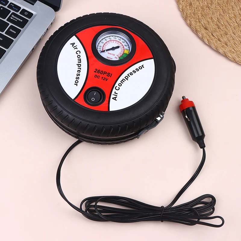 Compresseur d'air portable 12V durable pour gonflage de pneus - Livré avec un manomètre de pression des pneus et des accessoires essentiels pour compresseur d'air