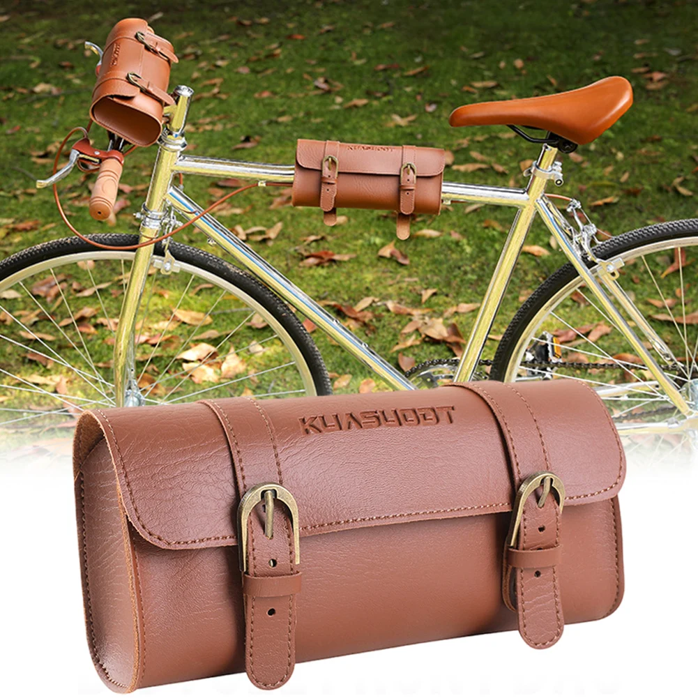 Sac de rangement de selle de moto en cuir, sac à outils de queue de fourche avant de vélo, sac de vélo Vintage de grande capacité, accessoires de vélo