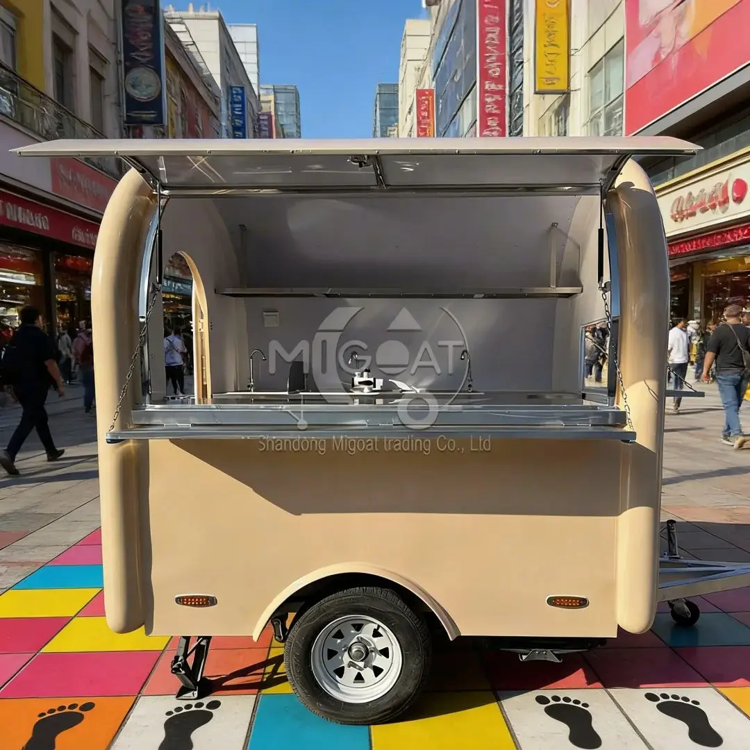 Remorque alimentaire mobile en acier inoxydable, 230cm, moins chère, camions alimentaires, chariot de remorque alimentaire, banc de travail personnalisé, friteuse, congélateur