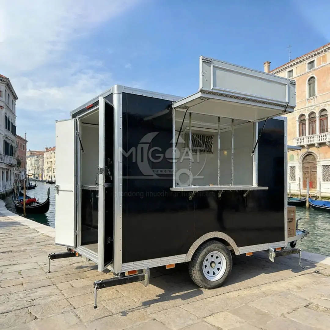 Chariot de nourriture Mobile, remorque de cuisine commerciale en acier inoxydable, restauration rapide, camion de vente Mobile de collations