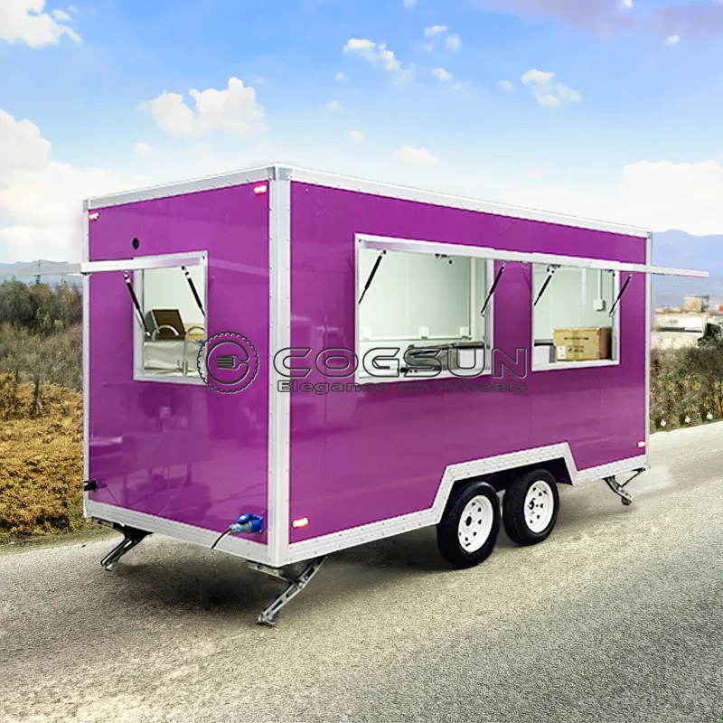Camion de cuisine mobile personnalisé, chaud, rapide, barbecue, hamburger, pizza, collation, kebab, café, nourriture, camionnette