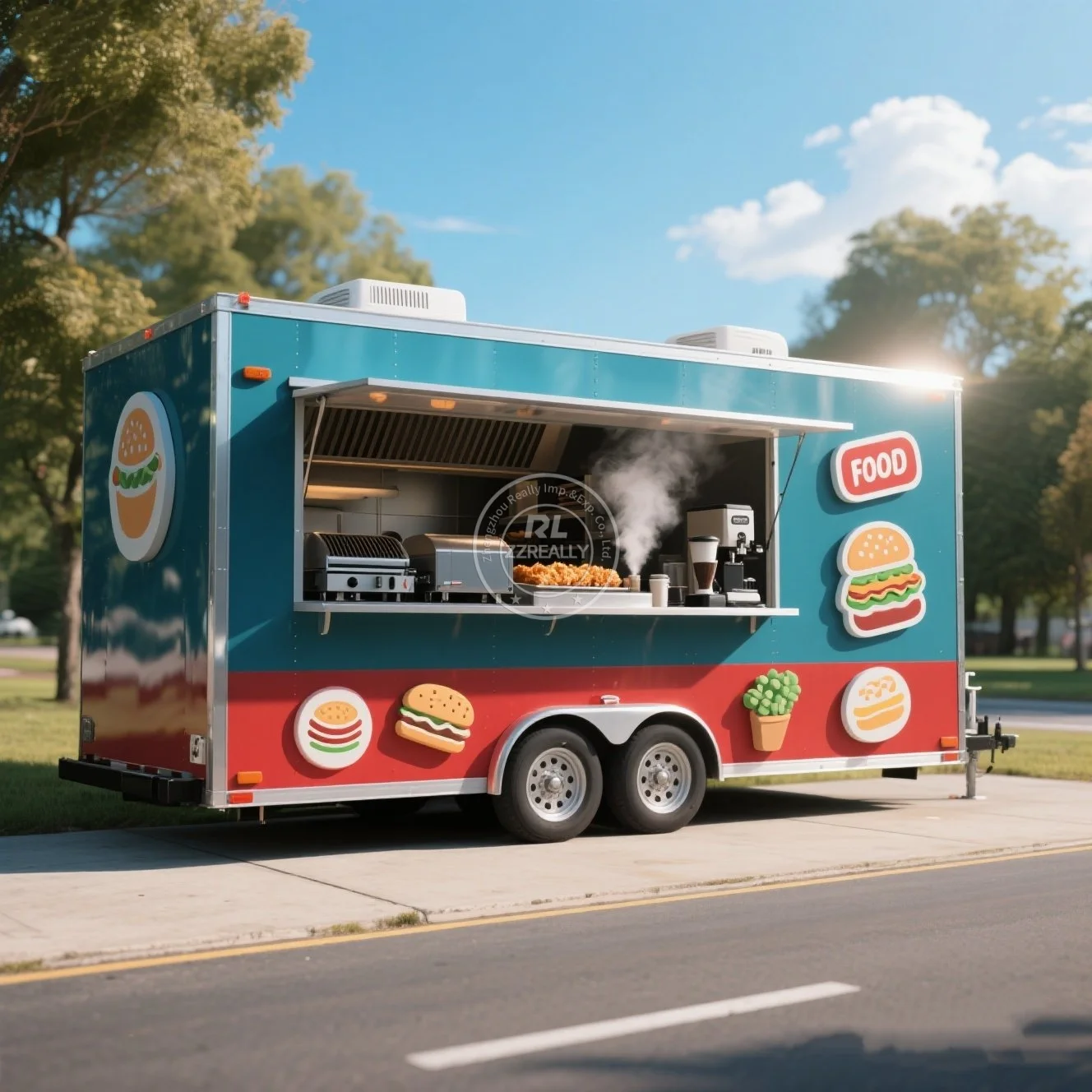 Équipement de cuisine complet, restaurant mobile, camion à café, camion à glaces, camion à churros, chariot à hot-dogs, barbecue, pizza, kebab, remorque de restauration rapide