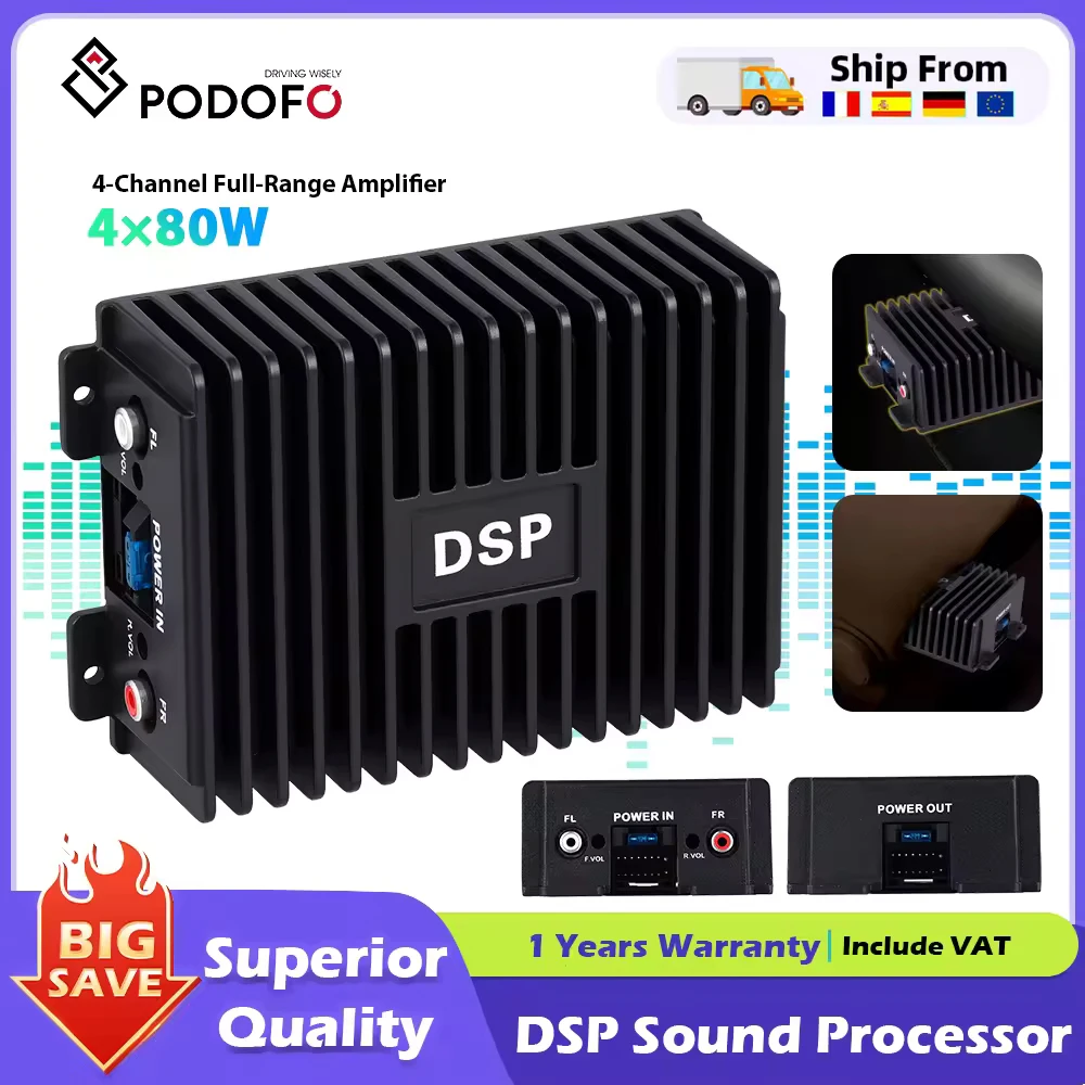 Podofo 4 canaux voiture DSP amplificateur pleine gamme Modification Audio amplificateur de puissance processeur de son numérique pour lecteur de voiture Android