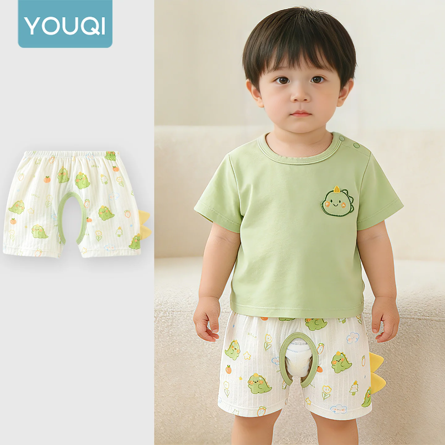 【Youqi】 Pantalons chinois pour bébés de 0 à 2 ans, shorts d'été à entrejambe ouvert pour enfants, shorts mignons et fins en pur coton pour bébés en été, 2026