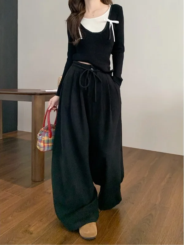 Ele taille haute jambe large pantalons décontractés femmes automne 2025 nouveau pantalon ample Dstring coréen Sle couleur Pure
