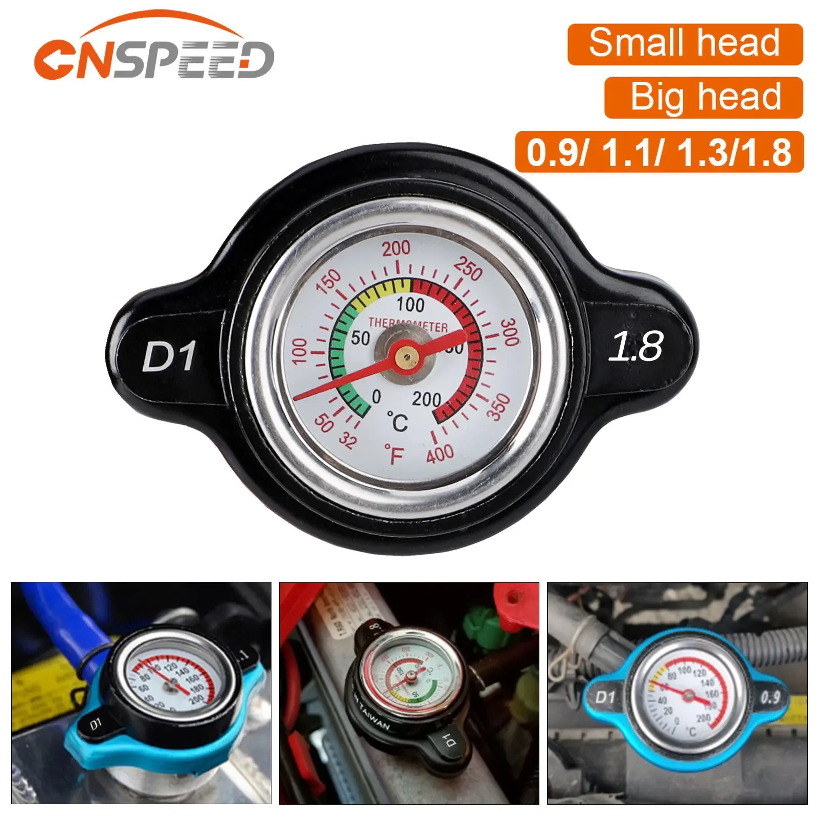 Bouchon de radiateur couvercle de réservoir tête thermomètre jauge de température de l'eau 0.9 1.1 1.3 1.8Bar avec utilitaire sûr pour motos course de voiture
