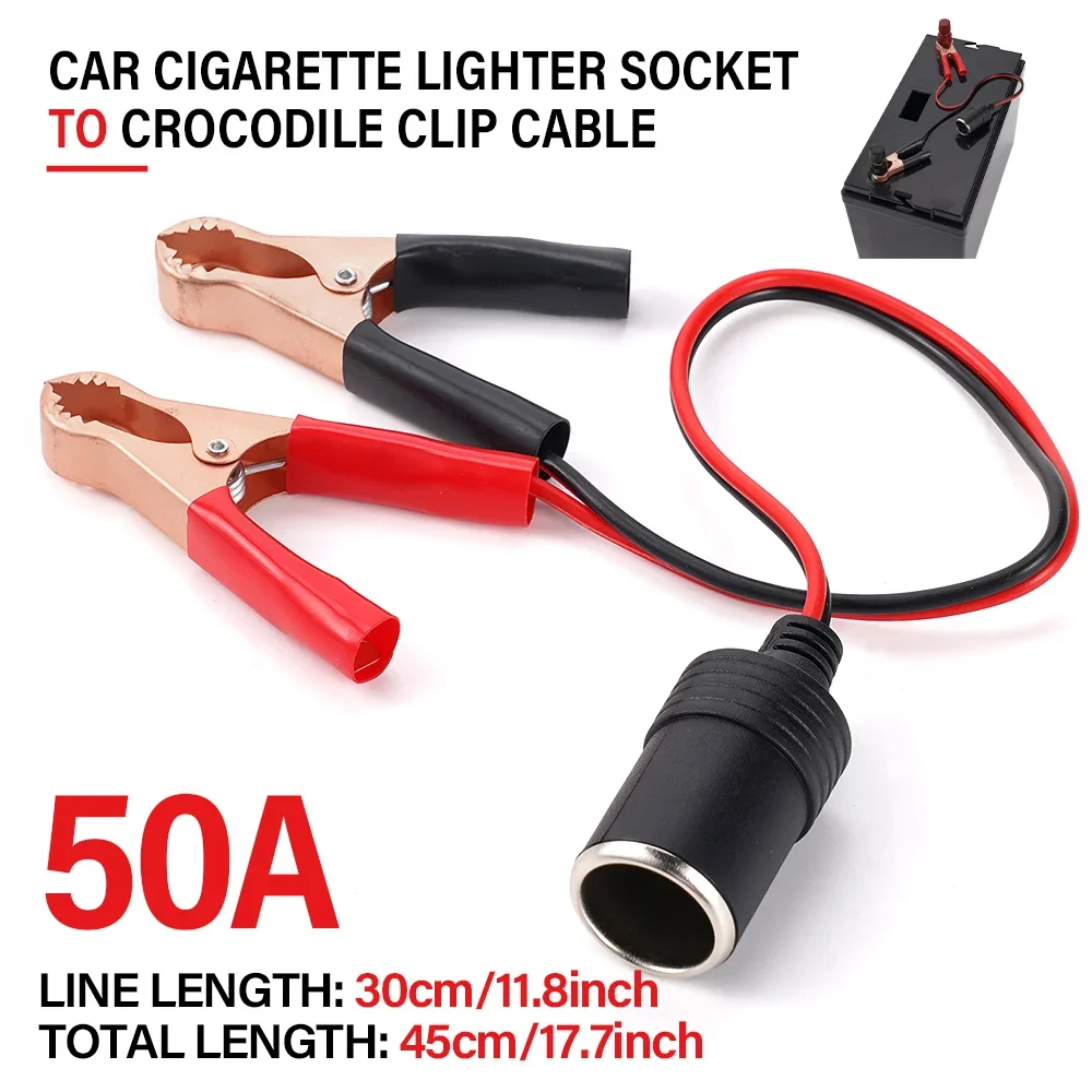 Prise allume-cigare de voiture 12V, adaptateur femelle 50A, rallonge de batterie à pince crocodile pour bornes de batterie de voiture.