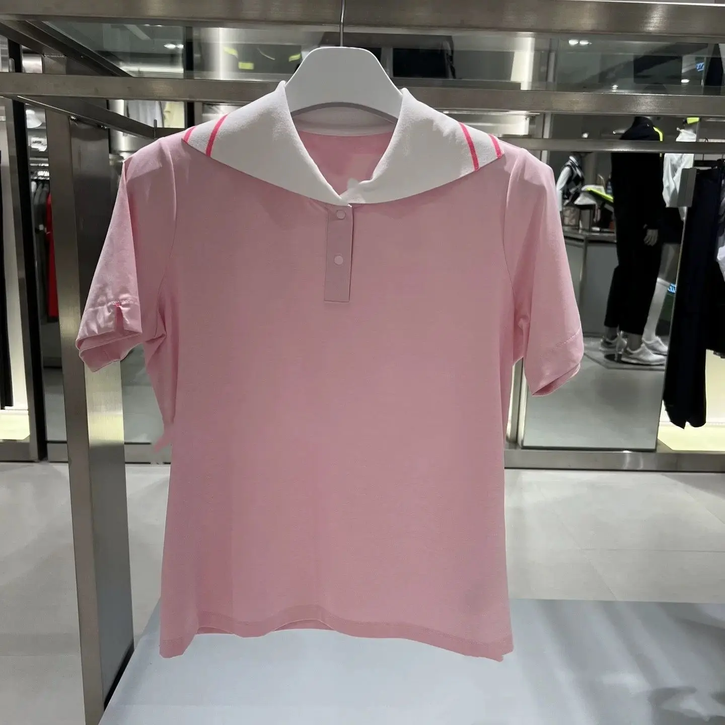 Haut de golf léger en tricot pour femme, à manches courtes, rayé, col chemise, décontracté